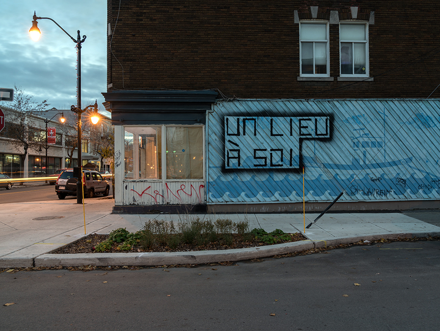 Six artistes développent un projet in situ dans un immeuble désaffecté en attente de rénovation dans le quartier Hochelaga à Montréal. Elles soulignent ainsi la transformation radicale des lieux par leurs œuvres. Ce projet expérimental de nature interdisciplinaire entrelace préoccupations sociales, peinture, cinéma, performance et installation. L’Avenue, un organisme en hébergement communautaire pour jeunes sans-abri, souhaite ainsi marquer symboliquement la réhabilitation de ces espaces en logements sociaux.