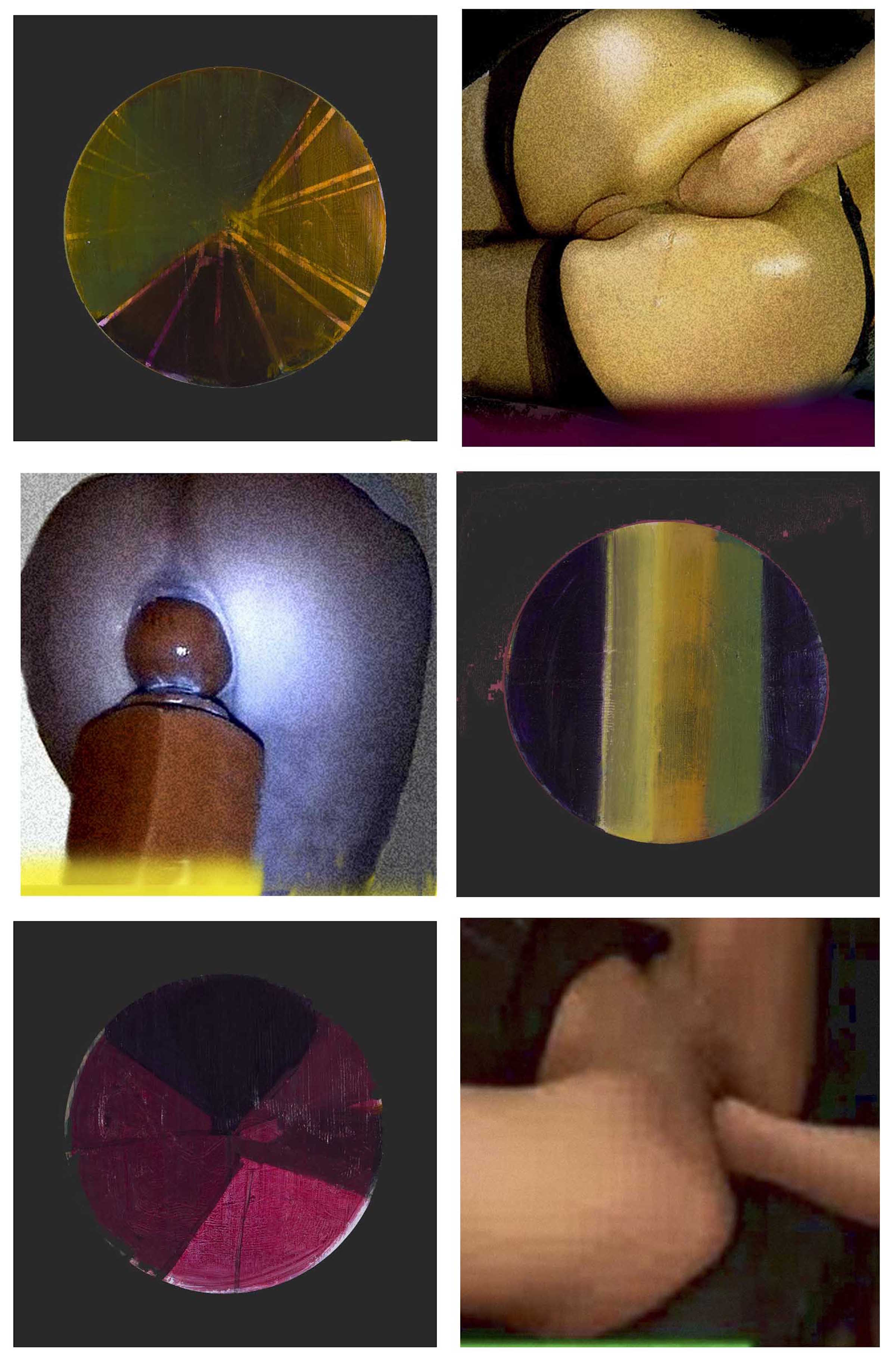 Les tableaux Gouffre 1 et Gouffre 2 sont construits à partir de documents photographiques trafiqués afin de mettre à l’épreuve la véracité de ces vues de l’« extrême » : des particules élémentaires à la vision de l’univers. Ce sont des images de « traumatismes » à l’échelle de l’infiniment petit et de l’infiniment grand : crashs atomiques et collisions de galaxies. Ses visions à fond perdu de matière dense s’entrechoquent avec des images de sexe crues. Comme dans les magazines consuméristes aux finis glacés, cette pollution visuelle hard, fabriquée à partir de parcelles d’images X sont soigneusement retouchées par la peinture pulvérisée. Que nous veulent précisément toutes ces images et que voulons-nous d’elles en échange ? Disent-elles la vérité sur le monde actuel ou sont-elles de sales manipulatrices ? Peuvent-elles nous servir à décoloniser nos cerveaux de la crasse idéologique ? Nous rendent-elles narcissiques ou encore amnésiques ?